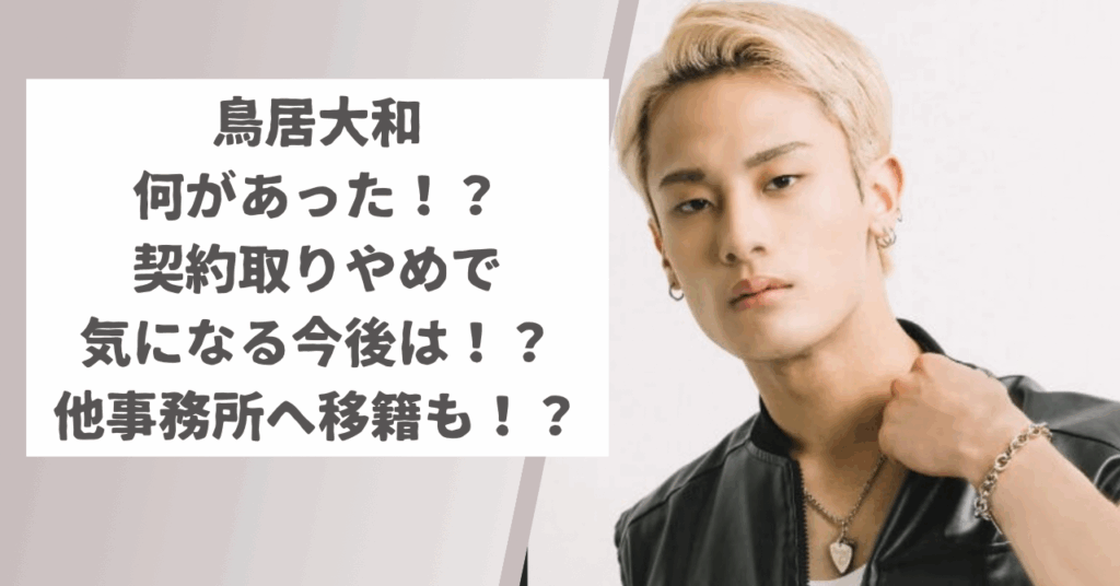 鳥居大和に何があった!?契約取りやめで気になる今後は!?他事務所へ移籍も!?
