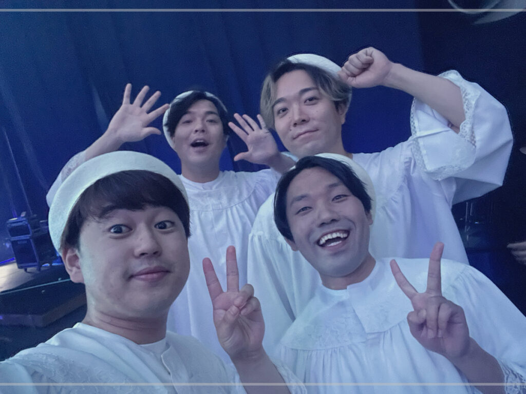 一方で、ステージの後方で実際にハモリやコーラスを担当しているのが裏のハモリ隊です。