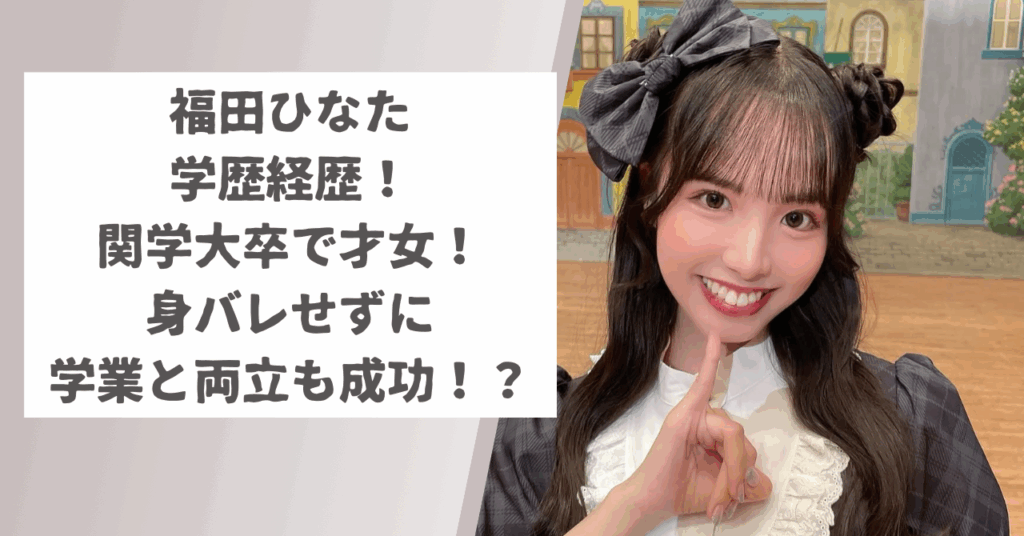 福田ひなたの学歴経歴!関学大卒で才女!?身バレせずに学業と両立も成功?女性アイドルグループ「可憐なアイボリー」のメンバーである福田ひなたさん。 実は高学歴で才女だというのですが本当なのでしょうか。 今回の記事では、福田ひなたさんのプロフィールや学歴、どのようなキャンパスライフを送っていたのかを紹介します。 【...