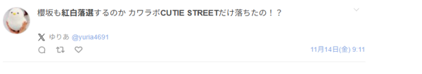 最後に、CUTIE STREET落選に対するファンの声を紹介します。