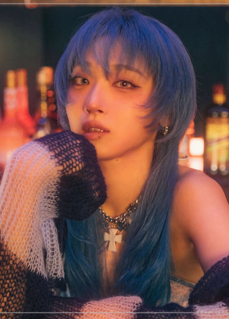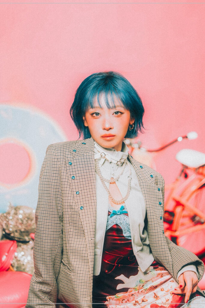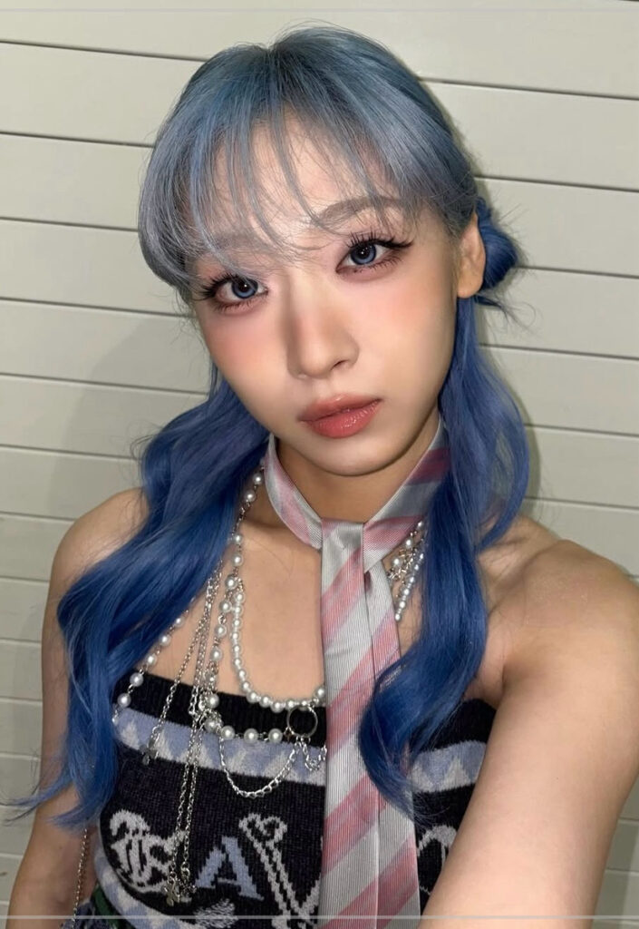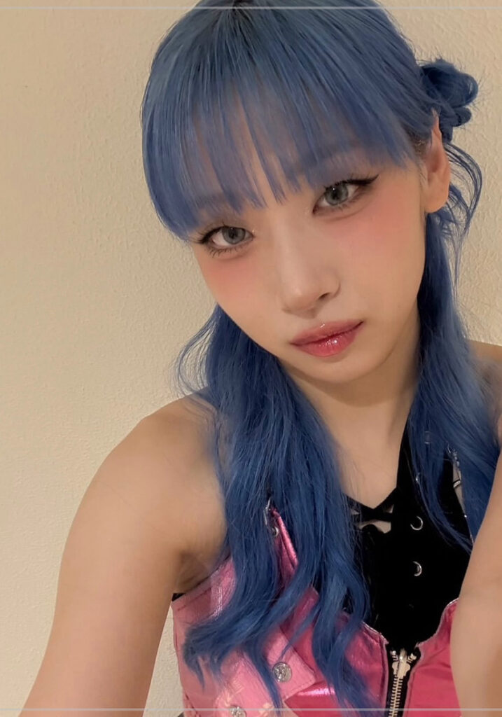 最近ではブルーのヘアカラーがトレードマークとなり、彼女らしさを象徴しています。