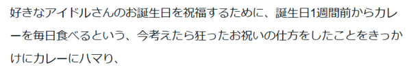 ③好きなアイドルの誕生日を祝うためにカレーを食べ続けた