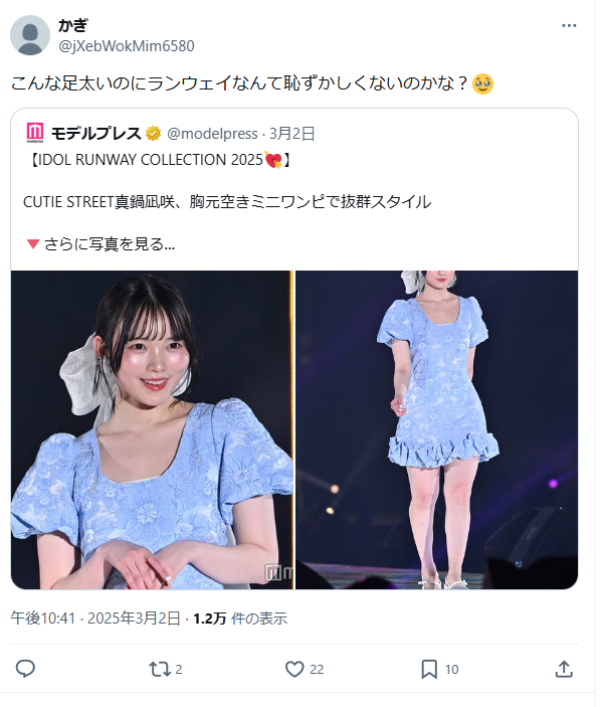 「足が太い」といわれるようになったのは『CREATEs presents IDOL RUNWAY COLLECTION 2025 Supported by TGC』に出演してからです。