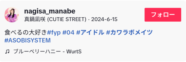 自身のTikTokのアカウントでも、「食べるの大好き」という動画を投稿しているほどなのです。