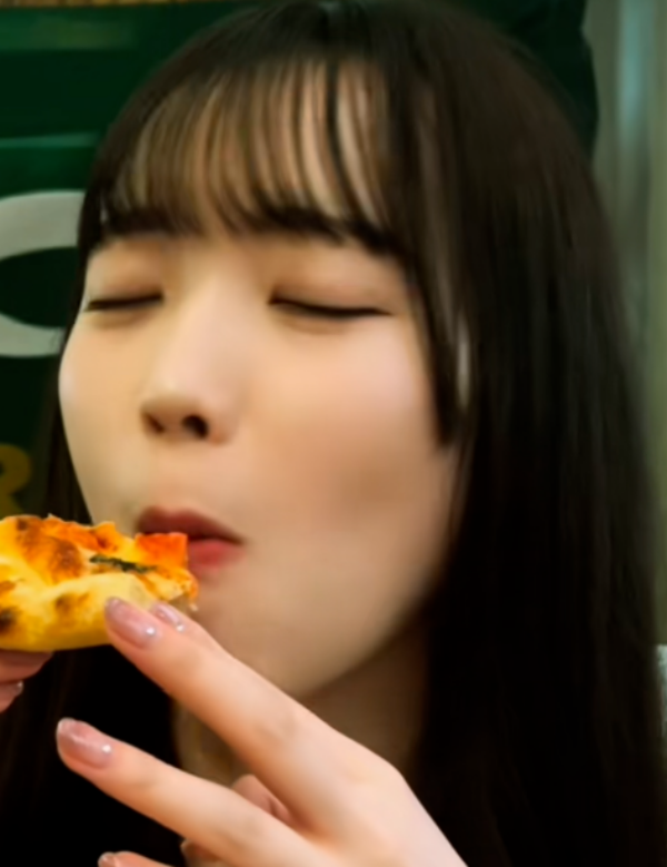 アイドルなのに、カロリーの高そうなピザを美味しそうにほおばっているのです。
