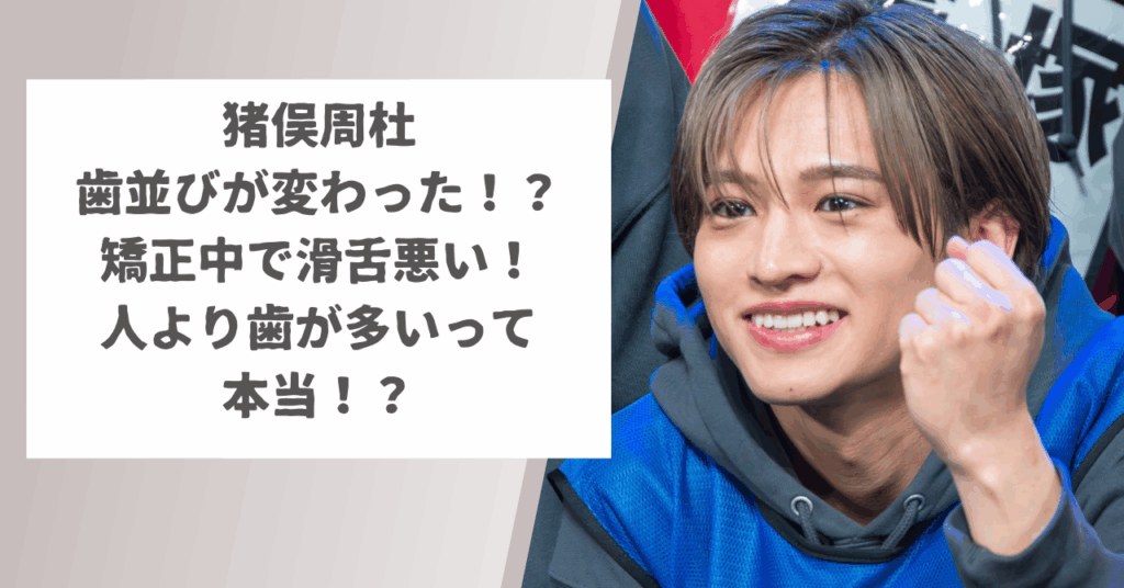 アイドルグループtimelesz(旧Sexy Zone)の新メンバーである猪俣周杜さん。 矯正をして歯並びが変わった?!といわれていますが、本当なのでしょうか。 人よりも歯が多く見える理由についても解説します。 【猪俣周杜の歯並びに変化!?】 まずは、猪俣周... -