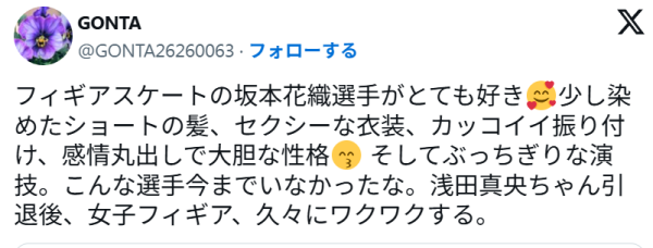 いつまでも自分磨きを忘れない坂本花織さんの今後の活躍にも注目していきましょう。