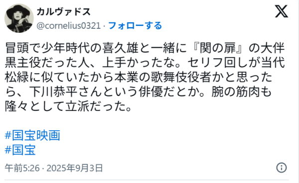 ちなみに、下川恭平さんは『国宝』に出演するために役作りとして筋トレをしたわけではありません。