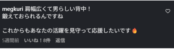 というのも、以下の画像のような見事な逆三角形の背中を披露したからです。