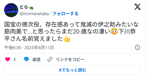 特に連続テレビ小説(通称・朝ドラ)と人気映画『国宝』への出演は、下川恭平さんの人気を押し上げた要因に違いありません。