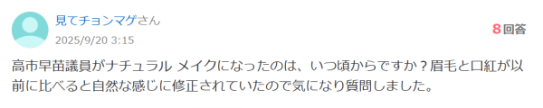 全体的なメイクも自然のようで、ナチュラルな高市早苗さんという印象です。