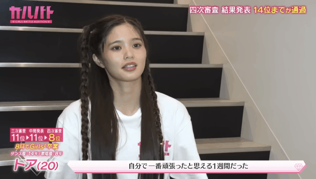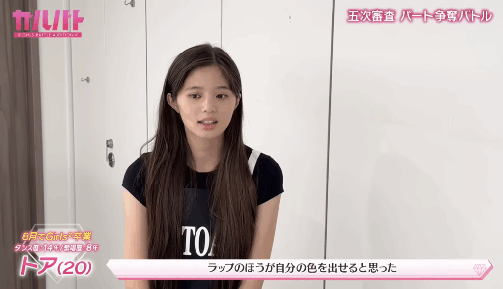トアさんはすでにLDHのアーティストとして活動していて、ガルバト参加時も Girls² の現役メンバーという、参加者の中でも特に異例の経歴を持っていました。